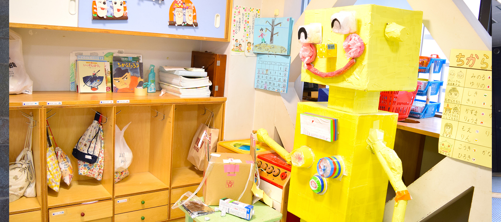 秋葉原の街中に位置していますが、中庭には大きな木が茂り、静かな環境を確保しています。18時までの延長保育や未就園児の保育など多様な保育ニーズにお応えしています。千代田区・台東区・文京区・中央区など8区から通われる園児さんがいらっしゃいます。現在、約100名の園児が在籍しています。